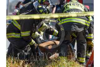 TOLUCA, ESTADO DE MÉXICO, 01 FEBRERO2022.- Vecinos de la comunidad de El Tejocote en Ejidos de Santiago Miltepec reportaron la presencia de un cuerpo en un tambo de cartón en el canal de aguas negras qué pasa por las calles de Vicente Guerrero y División del Norte, Bomberos de Toluca realizaron el rescate del tambo; este día se registró el hallazgo de otros dos cadáveres en distintos puntos de la capital mexiquense. FOTO: CRISANTA ESPINOSA AGUILAR /CUARTOSCURO.COM