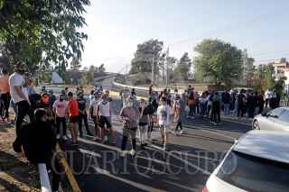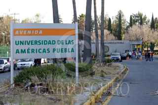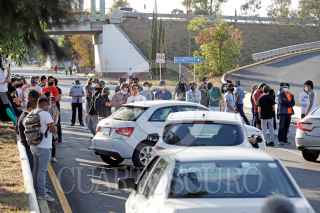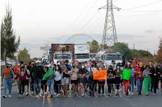 SAN ANDRÉS CHOLULA, PUEBLA, 01FEBRERO2022.- Integrantes de la comunidad de la Universidad de las Américas Puebla (UDLAP) bloquean la recta a Cholula para exigir reapertura del campus y que el regreso a clases presenciales. FOTO: MIREYA NOVO/CUARTOSCURO.COM
