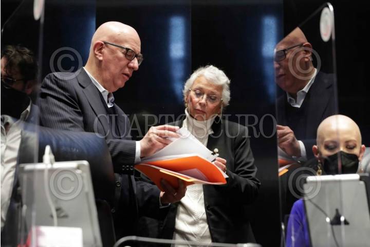 CIUDAD DE MÉXICO, 01FEBRERO2022.- Verónica Martínez García, senadora del PRI; Alejandra Reynoso, senadora del PAN; Olga Sánchez Cordero, presidente de la mesa directiva de la Cámara de Senadores; José Narro Céspedes, senador de Morena; Sergio Pérez Flores, senador de Morena, y Verónica Noemí, senadora de Morena, encabezaron la apertura del Segundo Periodo Ordinario de la LXV Legislatura. FOTO: CUARTOSCURO.COM