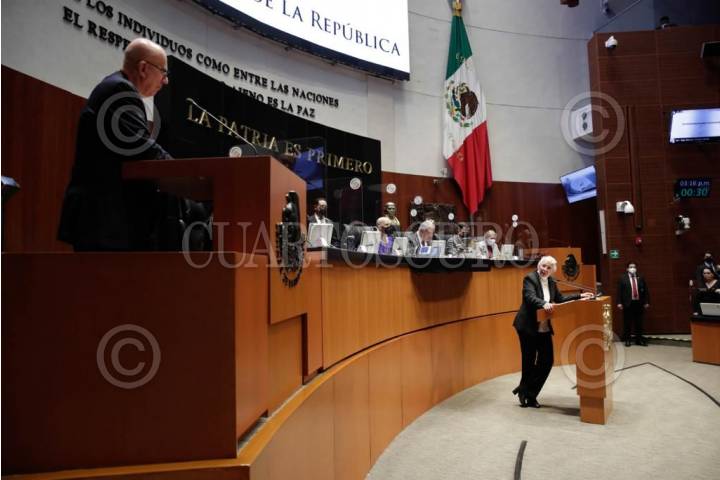 CIUDAD DE MÉXICO, 01FEBRERO2022.- Verónica Martínez García, senadora del PRI; Alejandra Reynoso, senadora del PAN; Olga Sánchez Cordero, presidente de la mesa directiva de la Cámara de Senadores; José Narro Céspedes, senador de Morena; Sergio Pérez Flores, senador de Morena, y Verónica Noemí, senadora de Morena, encabezaron la apertura del Segundo Periodo Ordinario de la LXV Legislatura. FOTO: CUARTOSCURO.COM