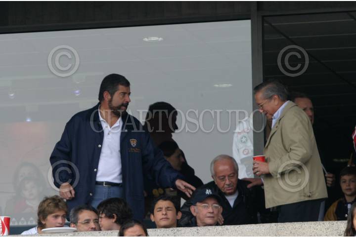 MÉXICO D.F. 12NOVIEMBRE2006.- José Ramón de la Fuente Rector de la UNAM y Francisco Javier Salazar Sáenz, Secretario del Trabajo y Previsión Social, durante el encuentro donde los Pumas de la UNAM, derrotaron con un marcador de 5 goles a cero a los Tigres de la UANL, en el cierre de la fecha 8 del futbol mexicano en el estadio de Ciudad Universitaria. FOTO: GUILLERMO PEREA /CUARTOSCURO.COM