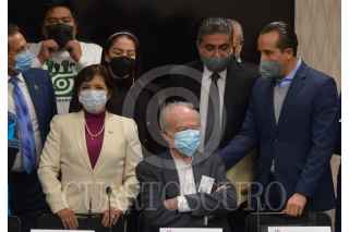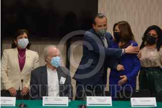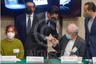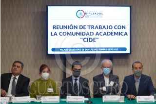 CIUDAD DE MÉXICO, 03FEBRERO2022.- Luis Espinosa Cházaro, diputado y coordinador PRD; Ximena Millán Cruz, académica del CIDE; Jorge Romero Herrera, diputado y coordinador del PAN, Jean Meyer, profesor del CIDE; Mario Gerardo Diestra, diputado del PAN, sostuvieron una reunión convocada con estudiantes y académicos del CIDE en la Cámara de Diputados. FOTO: MARIO JASSO/CUARTOSCURO.COM