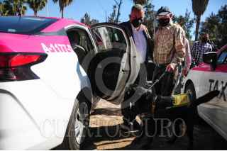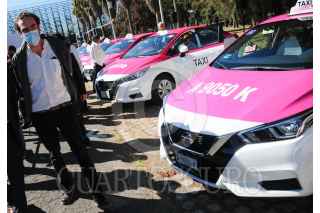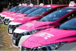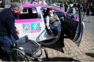 CIUDAD DE MÉXICO, 03FEBRERO2022. - Este jueves la Secretaría de Movilidad entregó más de 50 unidades nuevas de taxis a los operadores que en semanas anteriores entregaron sus automóviles al proceso de chatarrización. Estos nuevos vehículos cuentan un con asiento plegable que ayudará a brindar servicio a las personas que cuenten con alguna discapacidad, además de tener Integrada una placa en lenguaje braile para las personas invidentes. FOTO: DANIEL AUGUSTO /CUARTOSCURO.COM