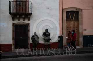 ZACATECAS, ZACATECAS, 04FEBRERO2022.- Un hombre fue atacado a balazos cuando caminaba sobre la calle Tampico, del centro histórico. Aproximadamente a las 16:30 hrs, diversas corporaciones acudieron al llamado de fuertes detonaciones sobre la calle Ramon López Velarde, al llegar al lugar, vecinos indicaron que un hombre habría sido atacado, y herido se traslado a un hospital cercano. La balacera provoco temor en los comercios cercanos y diversos elementos de seguridad, Guardia Nacional y Ejército Mexicano, cerraron la zona para y desplegar un operativo. FOTO: GENARO NATERA /CUARTOSCURO.COM