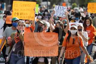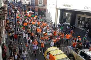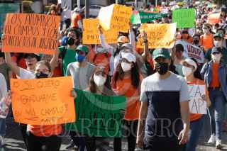 PUEBLA, PUEBLA, 4FEBRERO2022.- Estudiantes de la UDLAP marcharon desde la Universidad en San Andrés Cholula hacia el zócalo de la ciudad de Puebla pidiendo la liberación del campus. FOTO: MIREYA NOVO/ CUARTOSCURO.COM
