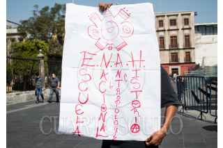 CIUDAD DE MÉXICO, 05FEBRERO2022.- Maestros y alumnos de la Escuela Nacional de Antropología e Historia (ENAH) se plantaron a un costado del Templo Mayor en el Centro Histórico para exigir que el presupuesto anual de la escuela esté garantizado. Además, reunieron fondos mediante un trueque de libros, plantas, ropa y accesorios. FOTO: DENISSE HERNÁNDEZ/CUARTOSCURO.COM
