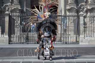 CIUDAD DE MÉXICO, 05FEBRERO2022.- Danzantes prehispánicos se colocan a un costado de la Catedral de la Ciudad de México en el Centro Histórico para bailar y hacer limpias a los capitalinos y visitantes.