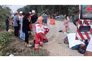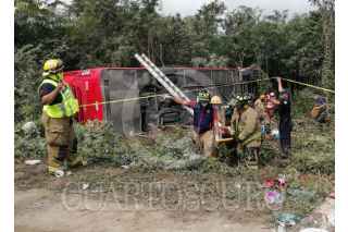 PLAYA DEL CARMEN, QUINTANA ROO, 06FEBRERO2022.- Un autobús de ADO volcó en la autopista Mérida-Cancún, en el tramo El Tintal, generando la movilización de cuerpos de emergencia de Cancún, Playa del Carmen y Lázaro Cárdenas. Fue a eso de las 10:30 de la mañana, que en el kilómetro 242 de la autopista, se registró el accidente. De manera preliminar se habla de al menos ocho personas que perdieron la vida y decenas de lesionados, que han sido canalizados a diversos hospitales. Hasta el momento ninguna autoridad ha dado una postura sobre este fatal accidente. FOTO: CUARTOSCURO.COM
