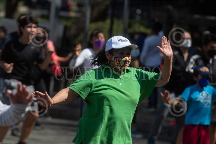 CIUDAD DE MÉXICO, 06FEBRERO2022.- Personas realizan actividad física a un costado del Ángel de la Independencia, muchos de ellos con cubrebocas, ya que la capital seguirá en semáforo amarillo a pesar de que las autoridades informan que ya hay un descenso en los casos de Covid-19. FOTO: MOISÉS PABLO/CUARTOSCURO.COM
