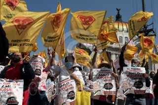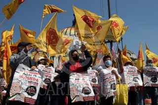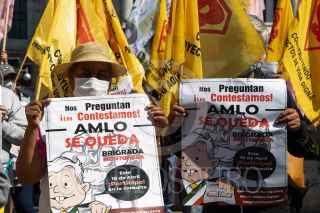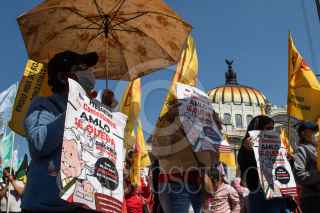 CIUDAD DE MÉXICO, 06FEBRERO2022.- Las organizaciones Bloque Urbano Popular, Asamblea de Barrios-CPVD, y el Congreso Popular de la CDMX se manifestaron en la explanada del Palacio de Bellas Artes para apoyar la revocación de mandato del 10 de abril en la cual se podrá ratificar o revocar el mandato del Ejecutivo Federal. Las organizaciones ahí presentes señalaron que el Presidente de México se debe quedar para se continúe con los proyectos emprendidos en esta administración y se siga dando marcha atrás a las políticas neoliberales implementadas por los gobiernos priistas y panistas. FOTO: MOISÉS PABLO/CUARTOSCURO.COM