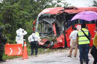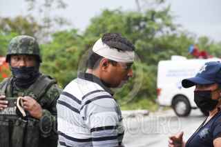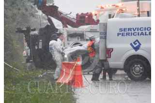 CANCÚN, QUINTANA, ROO, 06FEBRERO2022.- Un saldo preliminar de ocho personas muertas y más de 19 heridos dejó la volcadura de un camión de pasajeros ADO, en la carretera de cuota Mérida-Cancún, a la altura del cruce con la vía El Tintal-Playa del Carmen. Elementos de Servicios Periciales, Ejército y Guardia Nacional, trabajaron bajo la intensa lluvia para rescatar los cuerpos que quedaron atrapados entre los fierros retorcidos de la unidad. FOTO: ELIZABETH RUIZ/CUARTOSCURO.COM