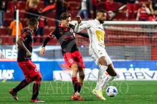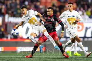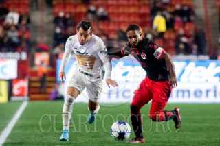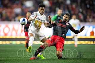 TIJUANA, BAJA CALIFORNIA, 06ENERO2022.- Los Xoloitzcuintles de Tijuana vencieron 1-0 a los Pumas en el Estadio Caliente, en juego de la Fecha 4 del torneo Grita México C22 de la Liga BBVA MX. Los fronterizos consiguieron su único tanto al minuto 68, cuando Lisandro López remató de volea un centro enviado por Lucas Rodríguez desde la banda izquierda. Previamente, en los minutos finales del primer tiempo, los locales tuvieron la oportunidad de irse al frente en el marcador al señalarse un tiro penal por una falta de José Rogério sobre Lucas Rodríguez. Sin embargo, Facundo Ferreyra envió el esférico a un costado de la portería, después de que se repitió un primer cobro que había atajado el guardameta Alfredo Talavera. Los auriazules se quedaron en el quinto lugar de la tabla de posiciones, con seis unidades, a la espera de que concluya la actividad de la jornada. FOTO: CORTESÍA CLUB PUMAS/CUARTOSCURO.COM