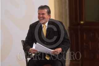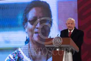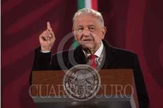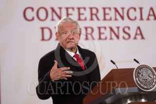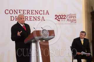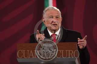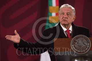 CIUDAD DE MÉXICO, 07FEBRERO2021.- Andrés Manuel López Obrador, presidente de México, durante la mañanera en Palacio Nacional. Ricardo Sheffield Padilla, titular de la Profeco, acompañó al mandatario. En esta edición de la conferencia no se transmitieron los videos de los obras federales por la veda electoral. FOTO: MOISÉS PABLO/CUARTOSCURO.COM