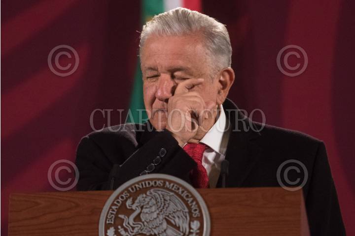 CIUDAD DE MÉXICO, 07FEBRERO2021.- Andrés Manuel López Obrador, presidente de México, durante la mañanera en Palacio Nacional. Ricardo Sheffield Padilla, titular de la Profeco, acompañó al mandatario. En esta edición de la conferencia no se transmitieron los videos de los obras federales por la veda electoral. FOTO: MOISÉS PABLO/CUARTOSCURO.COM
