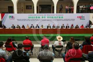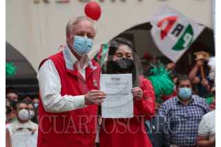 TOLUCA, ESTADO DE MÉXICO, 07FEBRERO2022.- Erick Sevilla Montes de Oca y Monserrath Sobreyra Santos registraron su fórmula como aspirantes a dirigir la Presidencia y Secretaría General del Comité Directivo Estatal del PRI para concluir el periodo estatutario 2019-2023 ante la Comisión Estatal de Procesos Internos al darse la salida de Alejandra del Moral. FOTO: CRISANTA ESPINOSA AGUILAR /CUARTOSCURO.COM