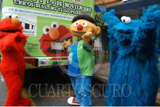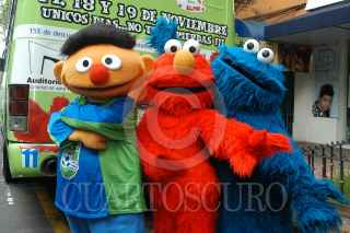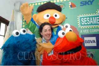 MEXICO D.F. 13NOVIEMBRE2006.- Elmo y Plaza Sésamo regresan nuevamente a México con un nuevo y espectacular show “Coloreando con Elmo ” esta vez presentandose en el auditorio nacional. Elmo, Enrique y el moustro come galletas antes de la conferencia de prensa. FOTO: GERMÁN ROMERO/CUARTOSCURO.COM