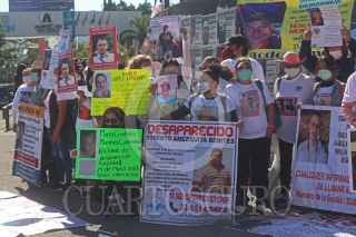 GUADALAJARA, JALISCO, 08FEBRERO2022.- Esta personas del colectivo Luz de Esperanza encabezaron una marcha para exigir justicia a las autoridades y pedir por sus familiares desaparecidos, dicha caminata partió de la Glorieta de los Desaparecidos y concluyo en Plaza de Armas, justo a las afueras de Palacio de Gobierno, donde entregaron un pliego petitorio para las autoridades correspondientes. FOTO: FERNANDO CARRANZA GARCIA CUARTOSCURO.COM