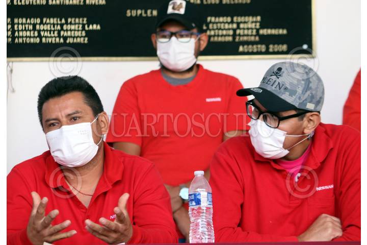 CUERNAVACA, MORELOS, 08FEBRERO2022.- Trabajadores de la ensambladora Nissan que fueron despedidos denuncian irregularidades en el pago de su finiquito. La empresa automotriz cerro una linea de producción, por ello fueron despedidos 560 empleados. Según los trabajadores se les hizo firmar un documento de renuncia, no se les indemnizo al 100 por ciento conforme a su contrato colectivo, además solo se les pago el 50 por ciento de su prima vacacional. Los trabajadores despedidos acudieron al Congreso del Estado para pedir apoyo jurídico, fueron atendidos por los diputados Agustín Alonso y Ángel Adame. FOTO: MARGARITO PÉREZ RETANA / CUARTOSCURO.COM