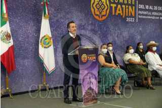 CIUDAD DE MÉXICO. 08FEBRERO2022.- El Gobernador de Veracruz, Cuitláhuac García; encabezó la conferencia sobre el evento cultural Cumbre Tajín a realizarse en Papantla Veracruz, el próximo mes de marzo. FOTO: VICTORIA VALTIERRA/CUARTOSCURO.COM
