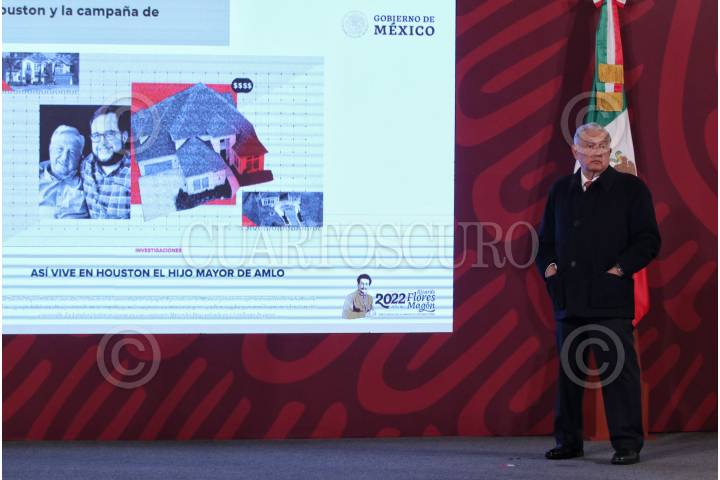 CIUDAD DE MÉXICO, 09FEBRERO2022.- Andrés Manuel López Obrador, presidente de México acompañado de Rosa Icela Rodríguez Velázquez, secretaria de Seguridad y Protección Ciudadana; Ricardo Mejía Berdeja, subsecretario de Seguridad Pública; Ana Elizabeth García Vilchis y Octavio Romero Oropeza, director general de Petróleos Mexicanos (Pemex), durante la conferencia de prensa en Palacio Nacional. FOTO: ANDREA MURCIA /CUARTOSCURO.COM