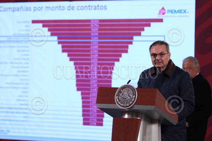 CIUDAD DE MÉXICO, 09FEBRERO2022.- Andrés Manuel López Obrador, presidente de México acompañado de Rosa Icela Rodríguez Velázquez, secretaria de Seguridad y Protección Ciudadana; Ricardo Mejía Berdeja, subsecretario de Seguridad Pública; Ana Elizabeth García Vilchis y Octavio Romero Oropeza, director general de Petróleos Mexicanos (Pemex), durante la conferencia de prensa en Palacio Nacional. FOTO: ANDREA MURCIA /CUARTOSCURO.COM
