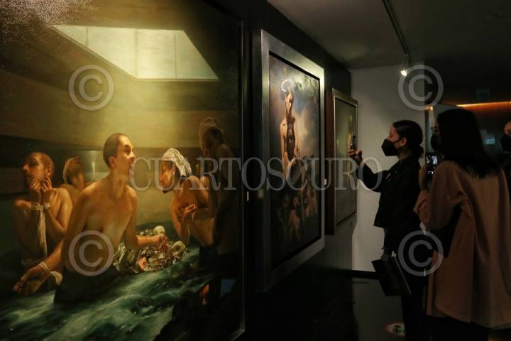CIUDAD DE MÉXICO, 09OCTUBRE2022.- Miguel Madariaga, artista visual, Ricardo Monreal, coordinador del grupo parlamentario de Morena y senadores, durante la inauguración "Madariaga, la manía de ser normal" que estará expuesta en la planta baja de la Cámara de senadores. FOTO: ANDREA MURCIA /CUARTOSCURO.COM