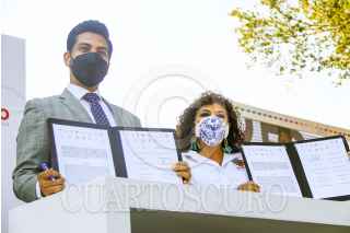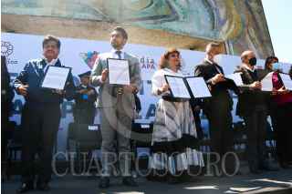 CIUDAD DE MÉXICO. 09FEBRERO2022.- Alcaldes de la zona metropolitana de la Ciudad y del Estado de México, firmaron convenio de Seguridad y Paz. el evento lo encabezó Clara Brugada de Iztapalapa y los alcaldes de Ciudad Nezahualcóyotl y Ecatepec entre otros en la explanada de Cabeza de Juárez. FOTO: VICTORIA VALTIERRA/ CUARTOSCURO.COM