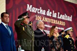 CIUDAD DE MÉXICO, 09FEBRERO2022.- Andrés Manuel López Obrador, Presidente de México, encabezó el 109 Aniversario de la Marcha de la Lealtad en el Castillo de Chapultepec. Lo acompañan Adán Augusto López Hernández, Secretario de Gobernación; Sergio Carlos Gutiérrez Luna, Presidente de la Mesa Directiva de la Cámara de Diputados; Ministro Arturo Zaldívar, Presidente de la Suprema Corte de Justicia de la Nación; Agustín Radilla Suastegui, Subsecretario de la Defensa Nacional; Beatriz Gutiérrez Müller, Esposa del Presidente Constitucional de los Estados Unidos Mexicanos; José Rafael Ojeda Durán, Secretario de Marina; Olga Sánchez Cordero Dávila, Presidenta de la Mesa Directiva de la Cámara de Senadores; Claudia Sheinbaum Pardo, Jefa de Gobierno de la Ciudad de México; Rosa Icela Rodríguez Velázquez, Secretaria de Seguridad y Protección Ciudadana; Marcelo Ebrard Casaubon, Secretario de Relaciones Exteriores. FOTO: PRESIDENCIA/CUARTOSCURO.COM