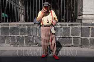 CIUDAD DE MÉXICO, 09FEBRERO2022.- "Farrash", un adulto mayor, toca la armónica y el pandero para ganarse unas monedas en la calle de Madero, en el Centro Histórico. FOTO: GRACIELA LÓPEZ /CUARTOSCURO.COM
