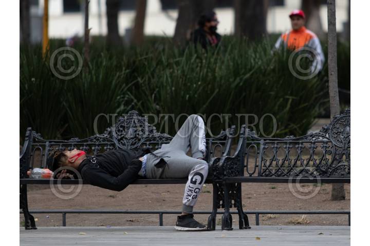 CIUDAD DE MÉXICO, 09FEBRERO2022.- Capitalinos aprovechan el clima nublado para aprovechar las bancas y jardines de la Alameda Central. FOTO: ANDREA MURCIA /CUARTOSCURO.COM