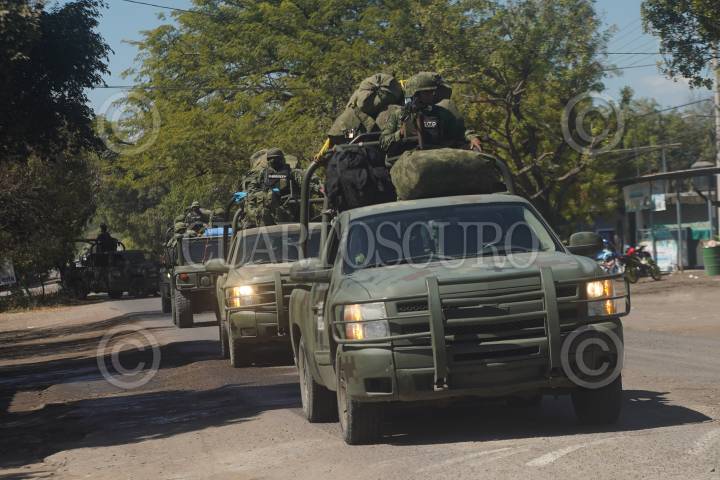 BUENAVISTA, MICHOACÁN, 08FEBRERO2022.- Elementos del Ejército Mexicano en coordinación con la Guardia Nacional y la Policía de Michoacán se encuentran realizando un operativo para retomar el estado de derecho en la región de Tierra Caliente. En las comunidades de Pinzandaro y El Terrero. Los soldados quitaron barricadas y taparon trincheras que servían para grupos armados, como el de Carteles Unidos, para parapetarse en las principales avenidas de estas comunidades. FOTO: JUAN JOSÉ ESTRADA SERAFÍN/CUARTOSCURO.COM