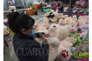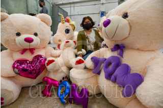 XONACATLÁN, ESTADO DE MÉXICO, 10FEBRERO2022.- Los osos de peluche para regalar este 14 de febrero Dia del Amor y la Amistad se encuentran listos en Peluchitos una empresa de Xonacatlán, municipio caracterizado por la elaboración de muñecos de peluches, a raíz de la pandemia por COVID-19 la mayoría de productores se vieron afectados en su producción y ventas, algunos tuvieron que elaborar cubrebocas, pero esto fue solo por unos meses, y paquetes que les quedaron los han ido donando a la población que lo necesita, poco a poco han regresado a su producción normal, actualmente Peluchitos ha aumentado sus ventas y durante la pandemia trato de conservar los empleos que generan a pesar de estar trabajando a un veinte por ciento de su capacidad, este año sus muñecos están llegando a toda la República Mexicana y esto lo lograron utilizando a su favor las redes sociales, llegando a diversos públicos; los precios de sus muñecos aumentaron un poco ante el alza de la materia prima. Hacen una invitación a la población a visitar este municipio mexiquense y adquirir sus muñecos de peluche. FOTO: CRISANTA ESPINOSA AGUILAR /CUARTOSCURO.COM