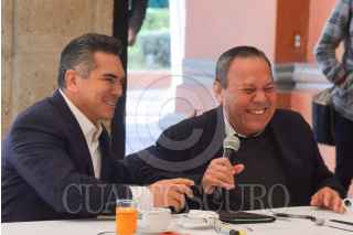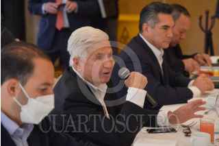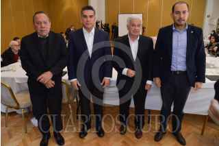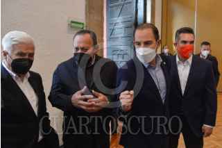 CIUDAD DE MÉXICO, 11FEBRERO2022.- Los dirigentes nacionales: Jesús Zambrano (PRD); Marko Cortés (PAN); Alejandro Moreno Cárdenas (PRI), y Demetrio Sodi de la Tijeraz, integrante de la organización social "Futuro 21" encabezaron la reunión para definir mecanismos de diálogo y coordinación para establecer una estrategia común para participar en los procesos electorales de 2022, 2023 y 2024. FOTO: MARIO JASSO/CUARTOSCURO.COM