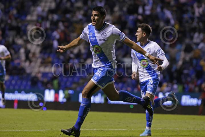 PUEBLA, PUEBLA, 11FEBRERO2022.- El Puebla empató a un gol con el Atlas, en partido correspondiente a la jornada 5 del torneo Clausura 2022 en el Estadio Cuauhtémoc. Las anotaciones fueron de Guillermo Martínez (Puebla) y Julián Quiñonez (Atlas). FOTO: MIREYA NOVO/ CUARTOSCURO.COM