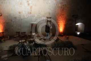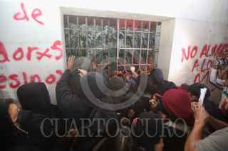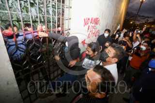 OAXACA, OAXACA, 12FEBRERO2022.- Maestros de la Sección 22 de la Coordinadora Nacional de Trabajadores de la Educación (CNTE), ingresaron al Patio del Huaje en el Jardín Etnobotánico de Oaxaca, en donde presuntamente se realizaría la unión religiosa de Elba Esther Gordillo y Luis Antonio Lagunas. Realizaron pintas y destrozos en el lugar. FOTO: CAROLINA JIMÉNEZ /CUARTOSCURO.COM
