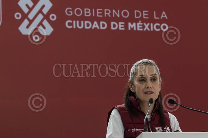 CIUDAD DE MÉXICO, 13FEBRERO2022. - Claudia Sheinbaum Pardo, jefa de Gobierno de la Ciudad; Carlos Ulloa Pérez, secretario de Inclusión y Bienestar Social; Sacerdote David Escobedo Orán, Párroco de la Iglesia San Miguel Arcángel y Alfredo Torres Zapata, representante de la Mayordomía del Pueblo de San Miguel durante visita al Albergue Transitorio San Miguel en Iztacalco. FOTO: ANDREA MURCIA / CUARTOSCURO.COM
