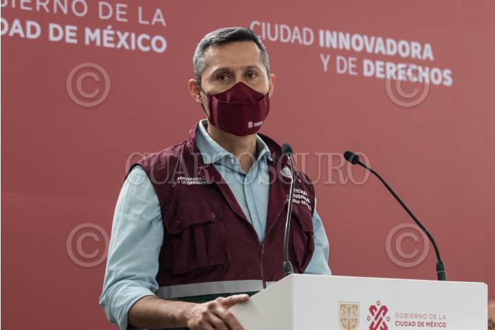CIUDAD DE MÉXICO, 13FEBRERO2022. - Claudia Sheinbaum Pardo, jefa de Gobierno de la Ciudad; Carlos Ulloa Pérez, secretario de Inclusión y Bienestar Social; Sacerdote David Escobedo Orán, Párroco de la Iglesia San Miguel Arcángel y Alfredo Torres Zapata, representante de la Mayordomía del Pueblo de San Miguel durante visita al Albergue Transitorio San Miguel en Iztacalco. FOTO: ANDREA MURCIA / CUARTOSCURO.COM