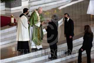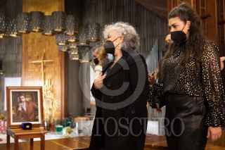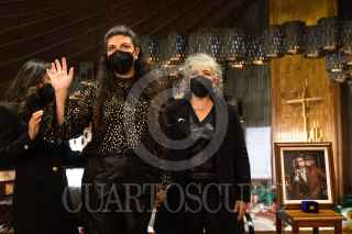 CIUDAD DE MÉXICO, 13FEBRERO2022.- Amanda Miguel y su hija Ana Victoria acudieron a la misa en memoria del cantante argentino Diego Verdaguer en la Basílica de Guadalupe. Ahí anunciaron que parte de las cenizas del intérprete permanecerán en el recinto guadalupano ya que era muy creyente de la Morenita del Tepeyac. Ambas evitaron tocar el tema de si Diego Verdaguer estaba o no vacunado contra el Covid-19, enfermedad por la que pereció. FOTO: MOISÉS PABLO/CUARTOSCURO.COM