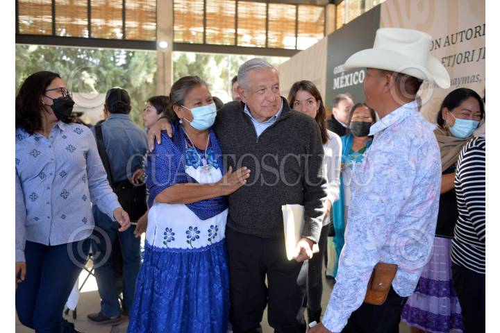 GUAYMAS, SONORA, 13FEBRERO2022.- Andrés Manuel López Obrador, Presidente de México, encabezó la reunión con autoridades tradicionales Yaquis en la Guardia Tradicional del pueblo Tórim. Acompañaron al mandatario: Alfonso Durazo Montaño, Gobernador del Estado de Sonora; Román Meyer Falcón, Secretario de Desarrollo Agrario, Territorial y Urbano; Adelfo Regino Montes, Director General del Instituto Nacional de los Pueblos Indígenas y Florentino Martínez Molina, Gobernador Tradicional del Pueblo Tórim. FOTO: PRESIDENCIA/CUARTOSCURO.COM