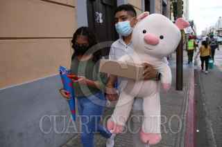 MÉRIDA, YUCATÁN, 14FEBRERO2022.- Cientos de yucatecos celebraron el día del amor y la amistad en la ciudad, jóvenes y adultos demostraron su cariño obsequiando globos, flores, peluches, entre otros; además de convivir con familiares y amigos. FOTO: MARTÍN ZETINA/CUARTOSCURO.COM