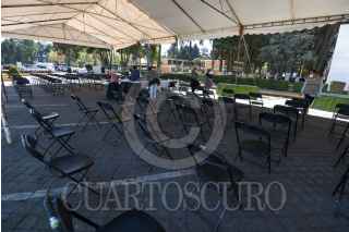 METEPEC, ESTADO DE MÉXICO, 14FEBRERO2022.- Dio inició a la aplicación del refuerzo de la vacuna contra COVID-19 en 70 municipios del Estado de México para personas de 30 a 39 años de edad; el módulo de vacunación ubicado en el Tecnológico Regional de Toluca, en Metepec en donde la afluencia ha sido muy poca, las letonas que llegan a inocularse lo hacen en muy poco tiempo ya que pasan de inmediato. FOTO: CRISANTA ESPINOSA AGUILAR /CUARTOSCURO.COM