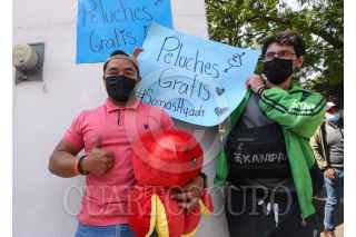 TOLUCA, ESTADO DE MÉXICO, 14FEBRERO2022.- Integrantes Hyadi Solar Racing Team, estudiantes de diversas licenciaturas de la UAEM y quienes han realizado diversas dinámicas para juntar ingresos y poder concluir su proyecto de un automóvil solar llamado Quetzal V3, en el marco del Día del Amor y la Amistad regalaron osos de peluches que les fueron otorgados por uno de sus patrocinadores, y a base de diversas dinámicas y retos les dieron regalos a estudiantes universitarios y pasarán un 14 de febrero increíble. FOTO: CRISANTA ESPINOSA AGUILAR /CUARTOSCURO.COM