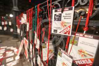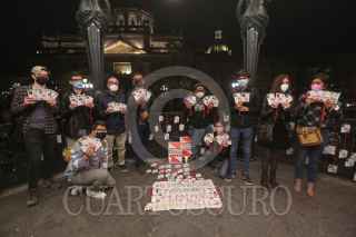 GUADALAJARA, JALISCO, 14FEBRERO2022.- Periodistas de Jalisco se sumaron por segunda ocasión al movimiento nacional contra las agresiones a periodistas, esto en Plaza de Armas justo frente a Palacio de Gobierno, exigieron el alto a las agresiones y tener seguridad para ejercer el periodismo sin riesgo de ser asesinados. Recordaron a sus colegas asesinados en lo que va del 2022: José Luis Gamboa Arenas, Margarito Martínez Esquivel, Lourdes Maldonado López, Roberto Toledo Barrera y Heber López Vásquez. FOTO: FERNANDO CARRANZA GARCIA / CUARTOSCURO.COM