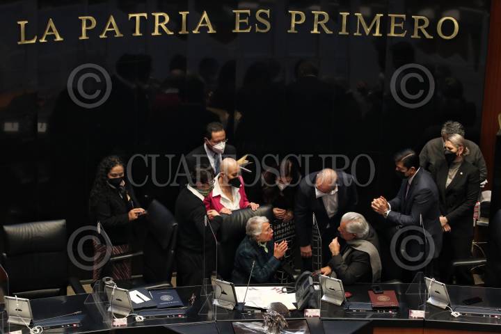 CIUDAD DE MÉXICO, 15FEBRERO2022.- Senadores del grupo parlamentario del PAN colocaron una maqueta de la "Casa Gris" exigiendo que se esclarezca el caso de posible conflicto de interés con el hijo de Andrés Manuel López Obrador, presidente de México y la empresa dueña de la casa y contratos millonarios de infraestructura en el país. FOTO: ANDREA MURCIA /CUARTOSCURO.COM