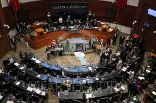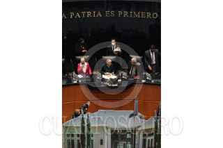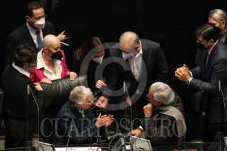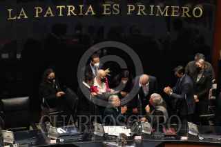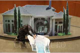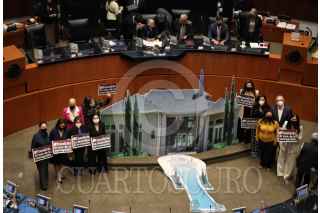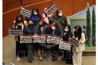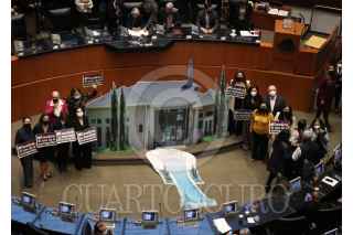 CIUDAD DE MÉXICO, 15FEBRERO2022.- Senadores del grupo parlamentario del PAN colocaron una maqueta de la "Casa Gris" exigiendo que se esclarezca el caso de posible conflicto de interés con el hijo de Andrés Manuel López Obrador, presidente de México y la empresa dueña de la casa y contratos millonarios de infraestructura en el país. FOTO: ANDREA MURCIA /CUARTOSCURO.COM