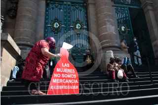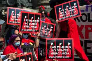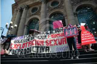 CIUDAD DE MÉXICO, 15FEBRERO2022.- Colectivos feministas se manifestaron al exterior del Congreso de la Ciudad de México para expresar su rechazo a las iniciativas que buscan reconocer la maternidad subrogada como derecho y regularla como práctica médica sin fines de lucro. FOTO: MARIO JASSO/CUARTOSCURO.COM