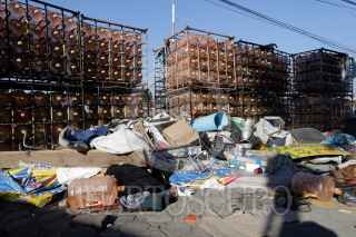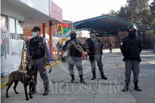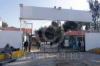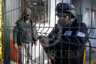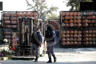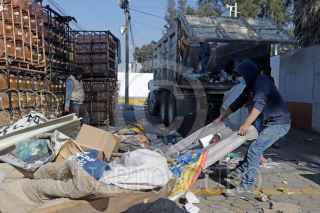 PUEBLA, PUEBLA, 15FEBRERO2022.- Trabajadores realizan limpieza en la planta de agua Bonafont que fue recuperada por elementos de la Policía Estatal tras desalojar a integrantes de la Unión de Pueblos de Cholula quienes la habían renombrado como Casa de los Pueblos. FOTO: MIREYA NOVO/ CUARTOSCURO.COM