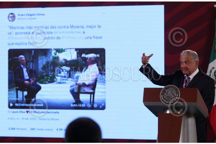 CIUDAD DE MÉXICO, 16FEBRERO2022.- Andrés Manuel López Obrador, presidente de México acompañado de Ana Elizabeth García Vilchis durante conferencia de prensa en Palacio Nacional. FOTO: ANDREA MURCIA /CUARTOSCURO.COM