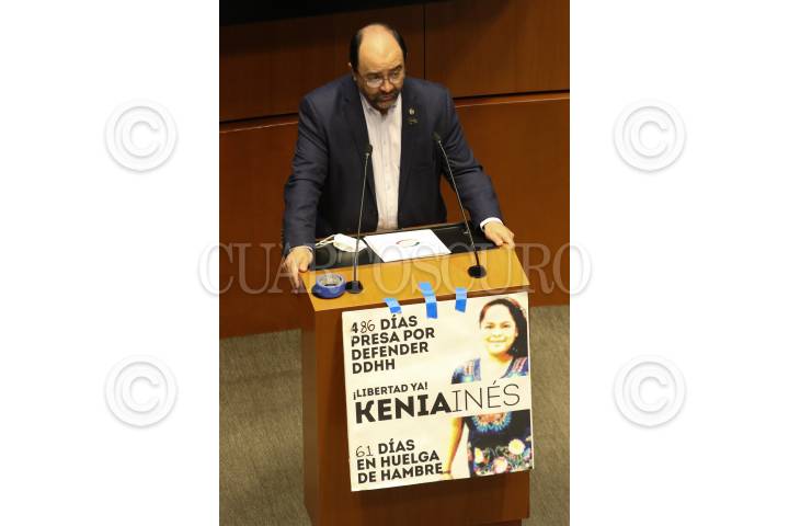 CIUDAD DE MÉXICO, 16FEBRERO2022.- En la sesión en el Senado de la República: César Cravioto, y compañeros de bancada mostraron cárteles con la leyenda de "se busca" y la imagen del panista Ricardo Anaya. También Napoleón Gómez Urrutia habló sobre el rescate de los cuerpos de los mineros en Pasta Conchos a 14 años de la tragedia. También se colgaron mantas en alusión a la Casa Gris, con los rostros del Presidente de México y su hijo José Ramón López Beltrán, mientras que los morenistas colocaron una con el rostro de Anaya, ex candidato presidencial blanquiazul. FOTO: MOISÉS PABLO /CUARTOSCURO.COM