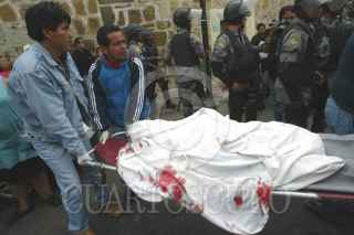 OAXACA, OAXACA 17 DE NOVIEMBRE 2006.- Cerca de las 7:50 horas, Marcos Contreras Mendoza fue acribillado de tres impactos de bala calibre 38 súper, a unas cuatro cuadras de donde se encuentra apostada la PFP. FOTO: MAX NUÑÉZ/CUARTOSCURO.COM